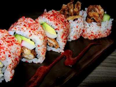 Their soft shell crab sushi roll, with crabstick, avocado, chili flakes and chili sauce. Loved it =) Came out freshly made and the crab was really prominent- could taste the "mustard", which is always great. We went there at a fairly quiet time, about 6pm right before the dinner rush, so all our food came really quickly, within 3-5 minutes, but then the place filled up really quickly.