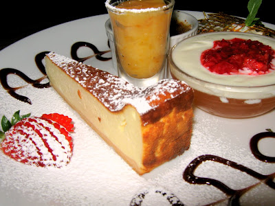 As opposed to coming really quickly after we ordered it, this dessert plate took quite a while. Wasn't sure if it was because the place was getting crowded and the kitchen was busy, but when it did arrive, it was no wonder the waiting time on it was so long. So many elements to prepare! That is their cheesecake, with a shot glass of apple sauce. Wasn't sure what the sauce was for actually- it was too sweet to eat alone, and didn't seem to go with the cheesecake. Hm.