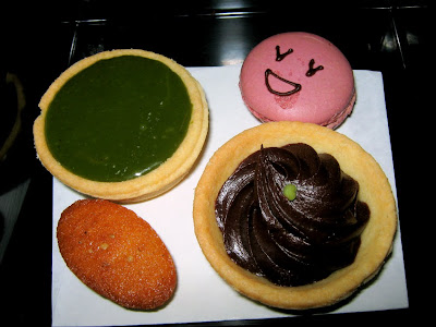 A chance for the execution of plan Take-Away! Green tea tart, the wasabi chocolate pie, small cake and macarons.